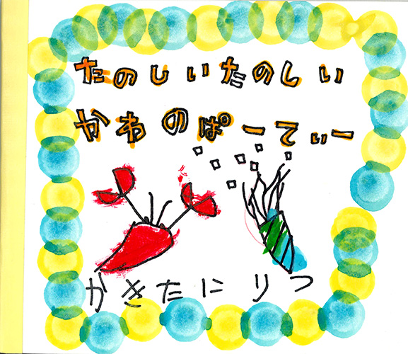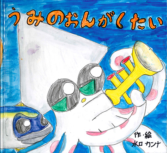 海の中に流れる音楽、どのようなメロディなんだろうと楽しく想像しました。中でもカニの八本の手に持ったマラカスから溢れる音色やブリのしっかりした尻尾で叩くたいこのリズム…。登場する生き物の表情の豊かさ。観察力があります。ラストのブリの正面からの迫力にもグッときました。